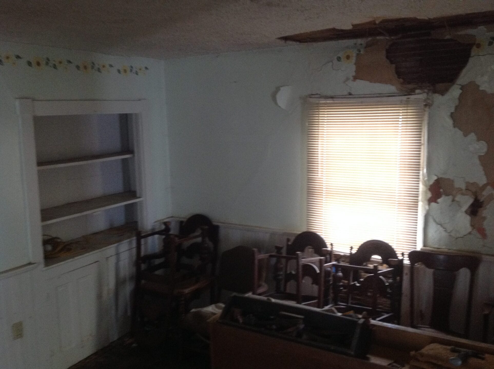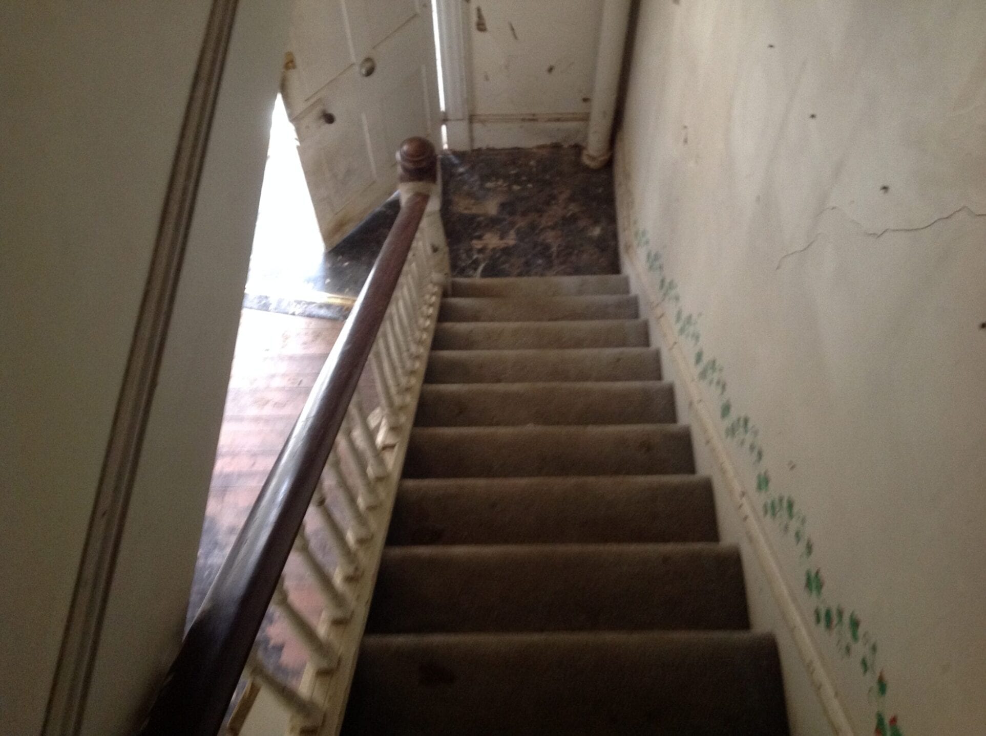 Nov 2014…The Living Room, vagrants had cut a hole in the ceiling to heat the bedroom above.