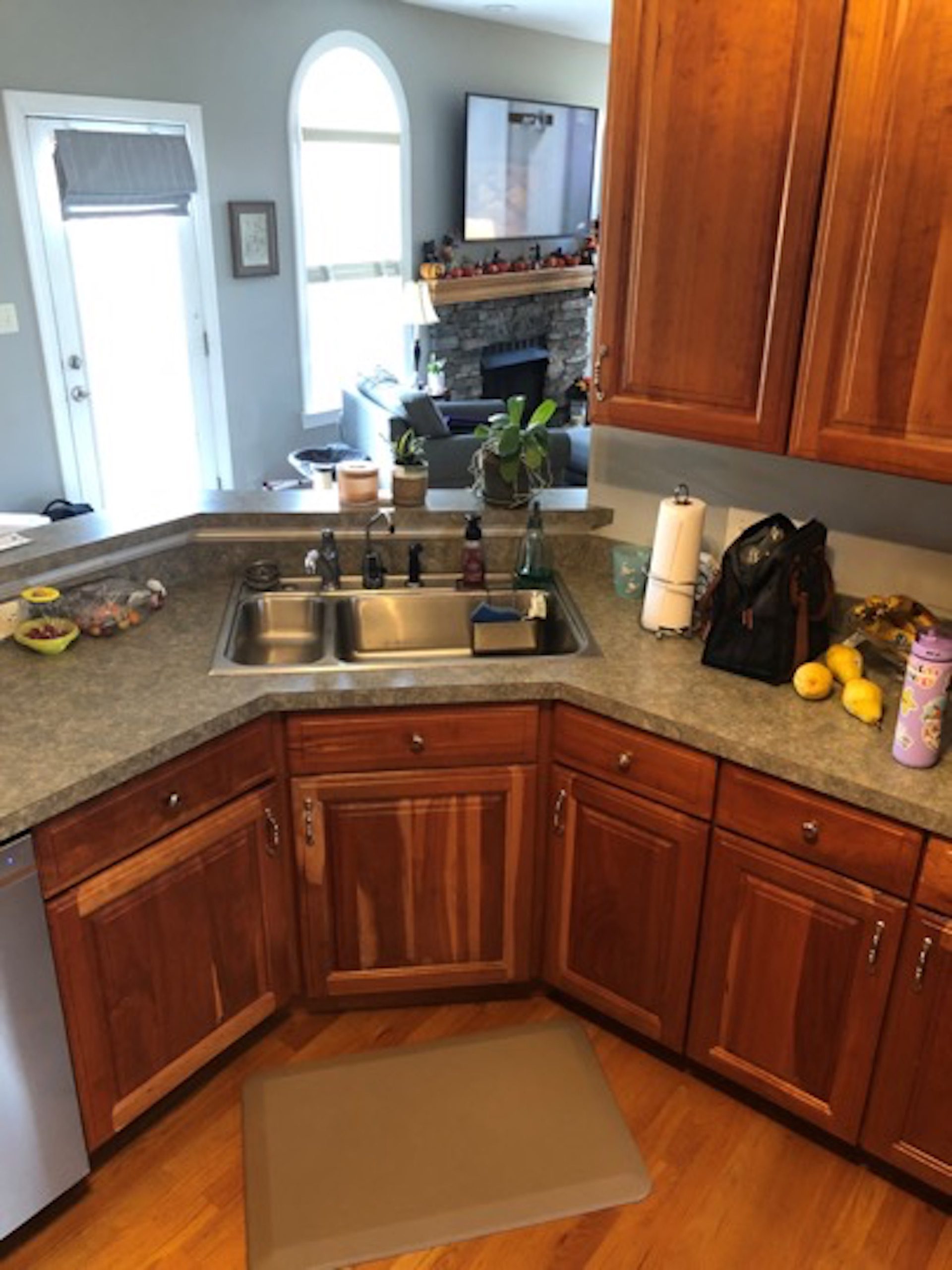 They wanted: An exhaust hood as a design element; A LP gas range; The Refrigerator in a central location; An island with the microwave in it; A farm sink and tile backsplashes.