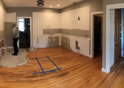So we: Demolished the kitchen and pantry; Patched and finished the floor; Installed the rough plumbing and electrical; Installed the exhaust duct to the outside.