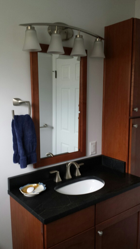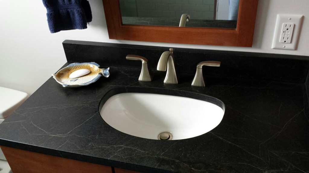 After…Soap stone top with reduced depth undermount bowl